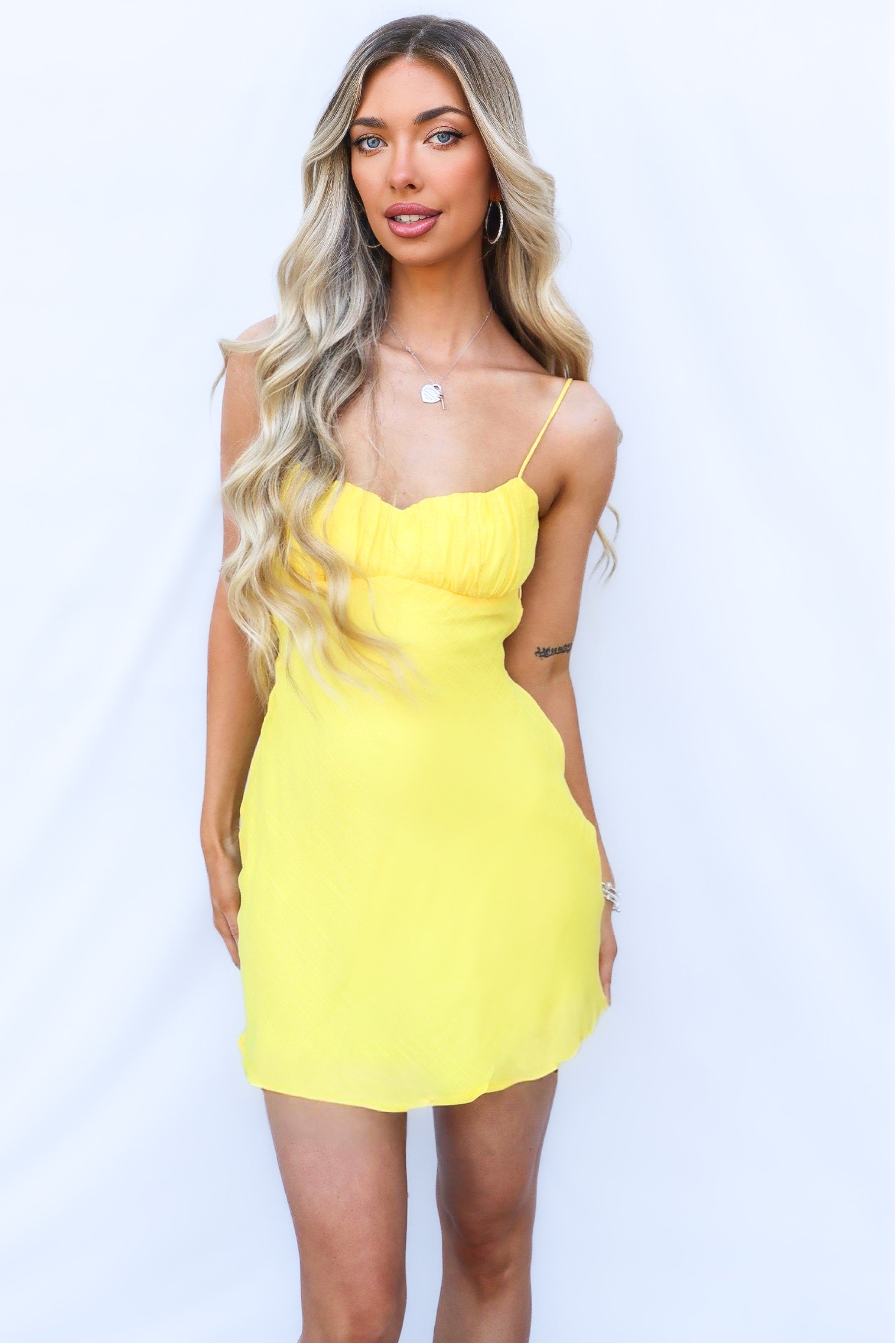 For a perfect blend of flirty and feminine charm, Rocco mini is the star of the show. Designed in a lightweight textured fabric, it features a flattering sweetheart neckline with delicate ruching at the bust that enhances the silhouette. The fit-and-flare cute creates effortless movement, while the open back with a twist detail adds a bold, unexpected touch. Ideal for summer outings or vacations, Rocco pairs perfectly a strappy sandal and our nude Eve bag, with a sleek updo for a statement look!